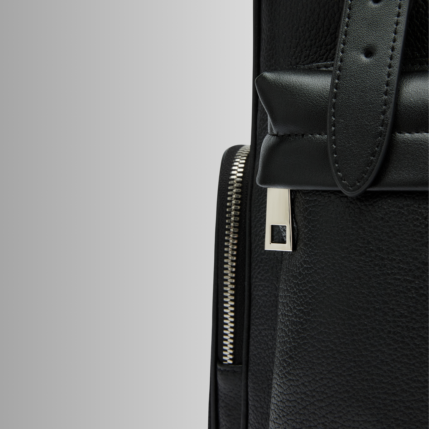 Designed thoughtfully for the go getter who values both style and substance. Made from the finest pebbled leather accompanied with classic smooth leather trims, The James embodies sophistication with its modern silhouette, stylish finish, and durable structure. Its semi utilitarian design is complemented by high-quality hardware and is finished nicely with a trolley slip and rain cover with reflective logo - perfect for traveling and the unpredictable British weather.
